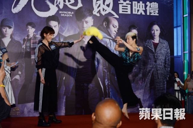 由張晉、鄭嘉穎、鄧麗欣及劉心悠主演的《九龍不敗》,日前於銅鑼灣JP戲院舉行首映禮。導演陳果聯同一眾演員包括UFC拳王Anderson Silva、陳鈺芸(JuJu)、周國賢、李麗珍、吳耀漢、吳嘉龍、林雪、吳岱融及董瑋亦有出席。JuJu在台上示範踢腿功夫。
