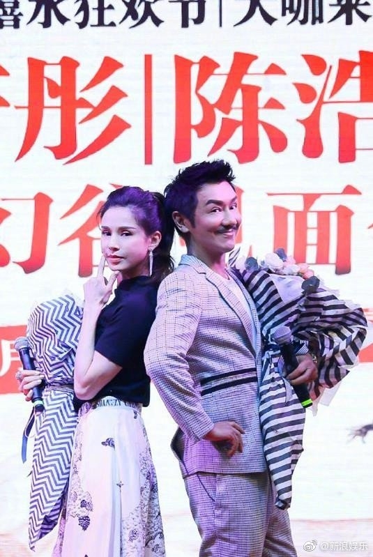 22年前的武俠劇《天龍八部》中飾演段譽、王語嫣的陳浩民與李若彤,是許多劇迷心中的經典角色。近日,49歲的陳浩民和45歲的李若彤於大陸出席橫店潑水節活動,由於當日落雨,有不少fans為了見陳浩民一面要冒雨等候,而陳浩民現身時眼見fans如此辛苦,更於台上跪下致謝。不過,有網民貼出陳浩民當天出席活動的照片,竟然發現留着小鬍子的陳浩民整個人笑起來相當不自然,臉上毫無皺紋之餘,「膠」質非常重。